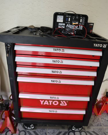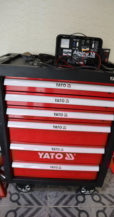 Chariot d’atelier YATO équipé d’outils complets pour toutes les interventions mécaniques.